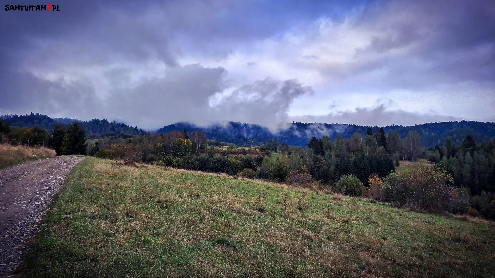 W drodze na szczyt minął mnie zjeżdżający z góry samochód terenowy, jego pasażerowie mieli raczej zaskoczone miny 😉 No bo na górę? Wieczorem? Gdy mokro i zimno?
